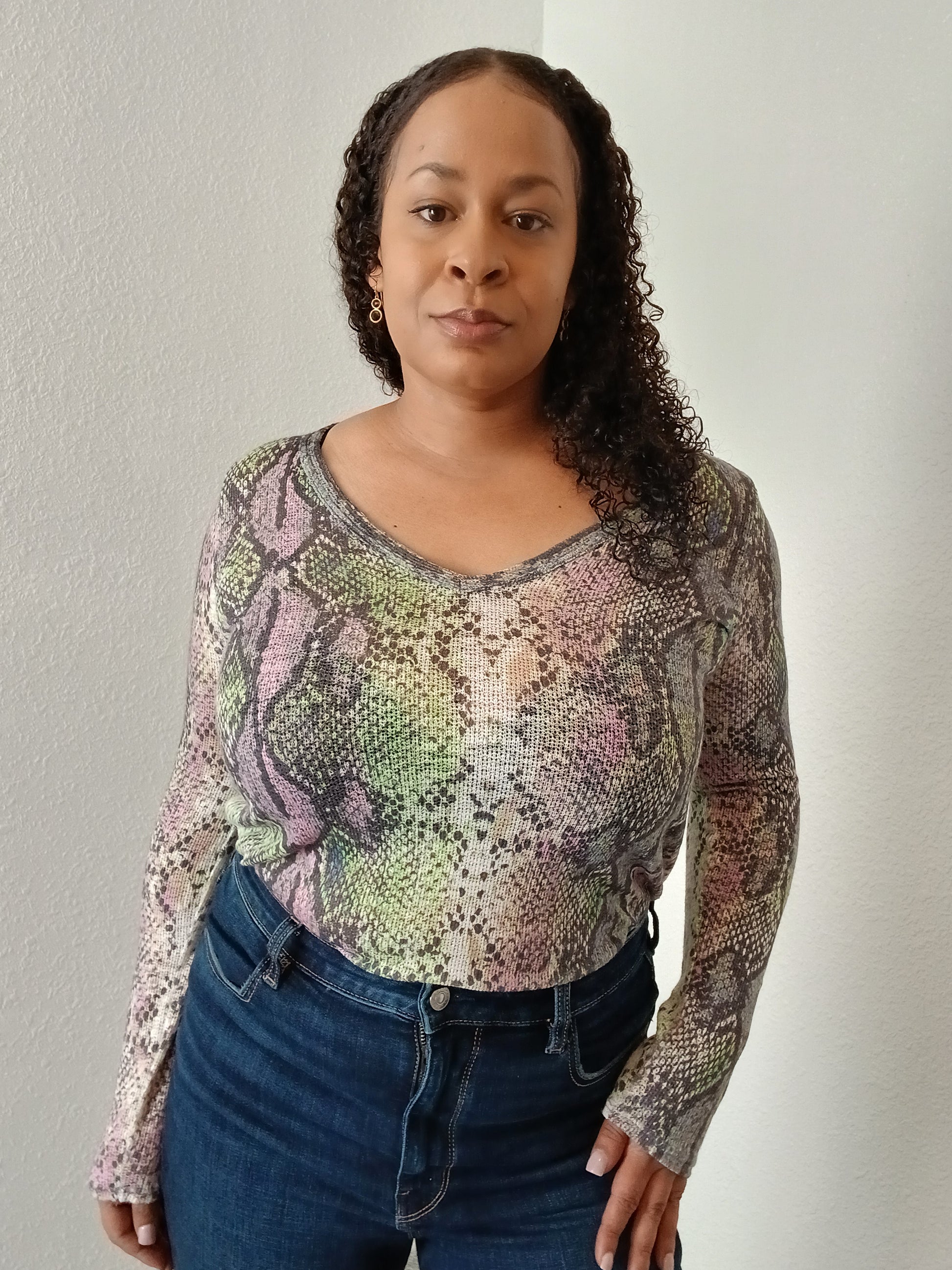 The snakeskin print low gauge Hacci V-neck top is a chic and trendy piece for adding a touch of flair to your outfit. The snakeskin print adds a bold and stylish element to the top. The low gauge Hacci fabric offers a soft and comfortable feel with a lightweight texture. The V-neckline provides a flattering and versatile look. Pair this top with jeans or leggings for a fashion-forward and edgy ensemble perfect for a night out or casual events.